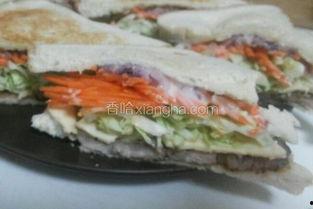 3. 蔬菜猪扒三明治:在猪扒中加入更多的蔬菜,如黄瓜、胡萝卜、青椒等,增加营养。